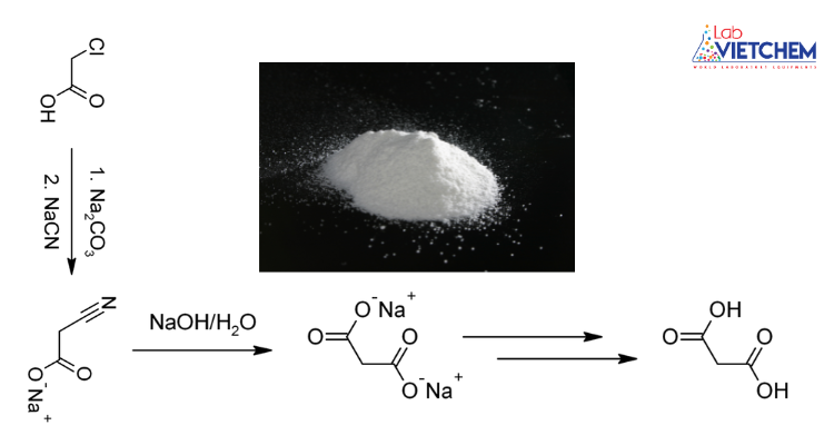 Trong các thí nghiệm, CH2 (COOH)2 được tổng hợp bằng phương pháp truyền thống sử dụng axit cloaxetic.