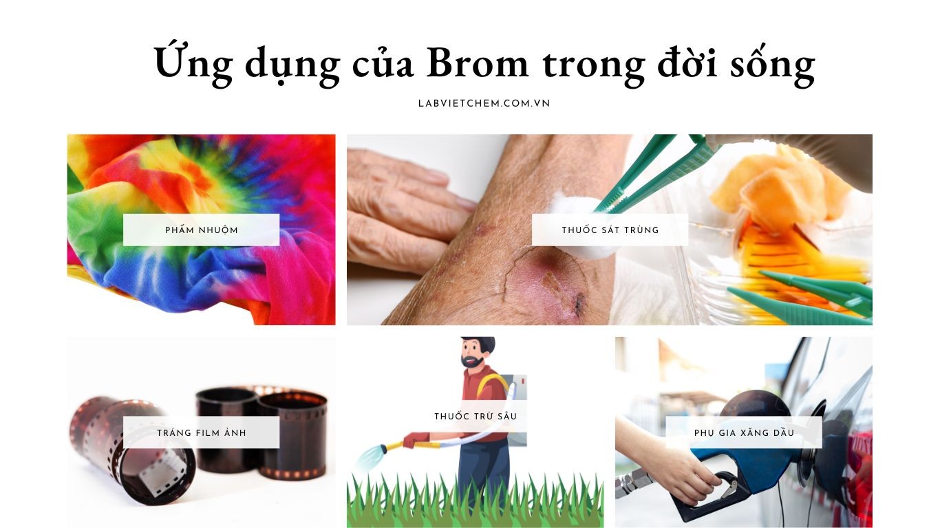 – Trong công nghiệp, điển hình là ngành dầu khí: Brom đóng vai trò là chất phụ gia cho xăng. Nhưng gần đây, ứng dụng này không còn phổ biến nữa. Nguyên nhân được giải thích là do hạn chế sử dụng chì trong xăng động cơ.