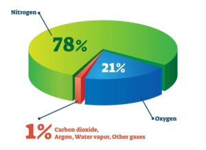 - 1% là carbon dioxide, hơi nước và khí hiếm