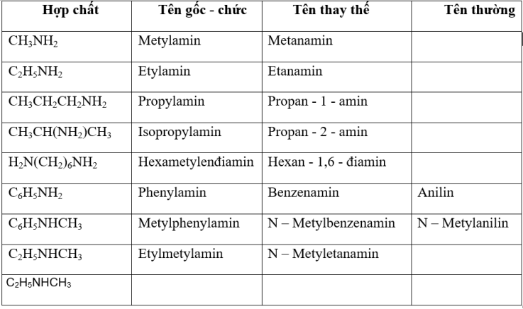 – Tên gọi thường chỉ áp dụng cho một số amin: