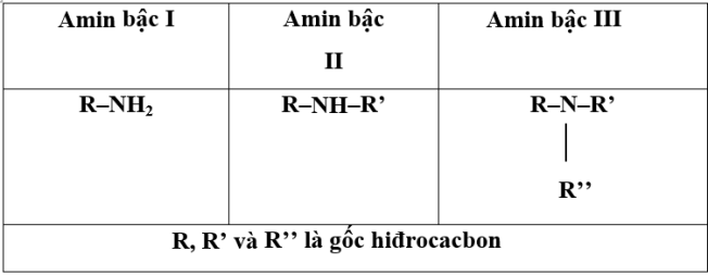 Amin được chia thành amin bậc 1, bậc 2 và bậc 3