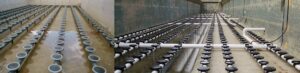 Tại bể trung gian, lưu lượng nước thải được ổn định, nồng độ ô nhiễm được điều chỉnh và pH được điều chỉnh