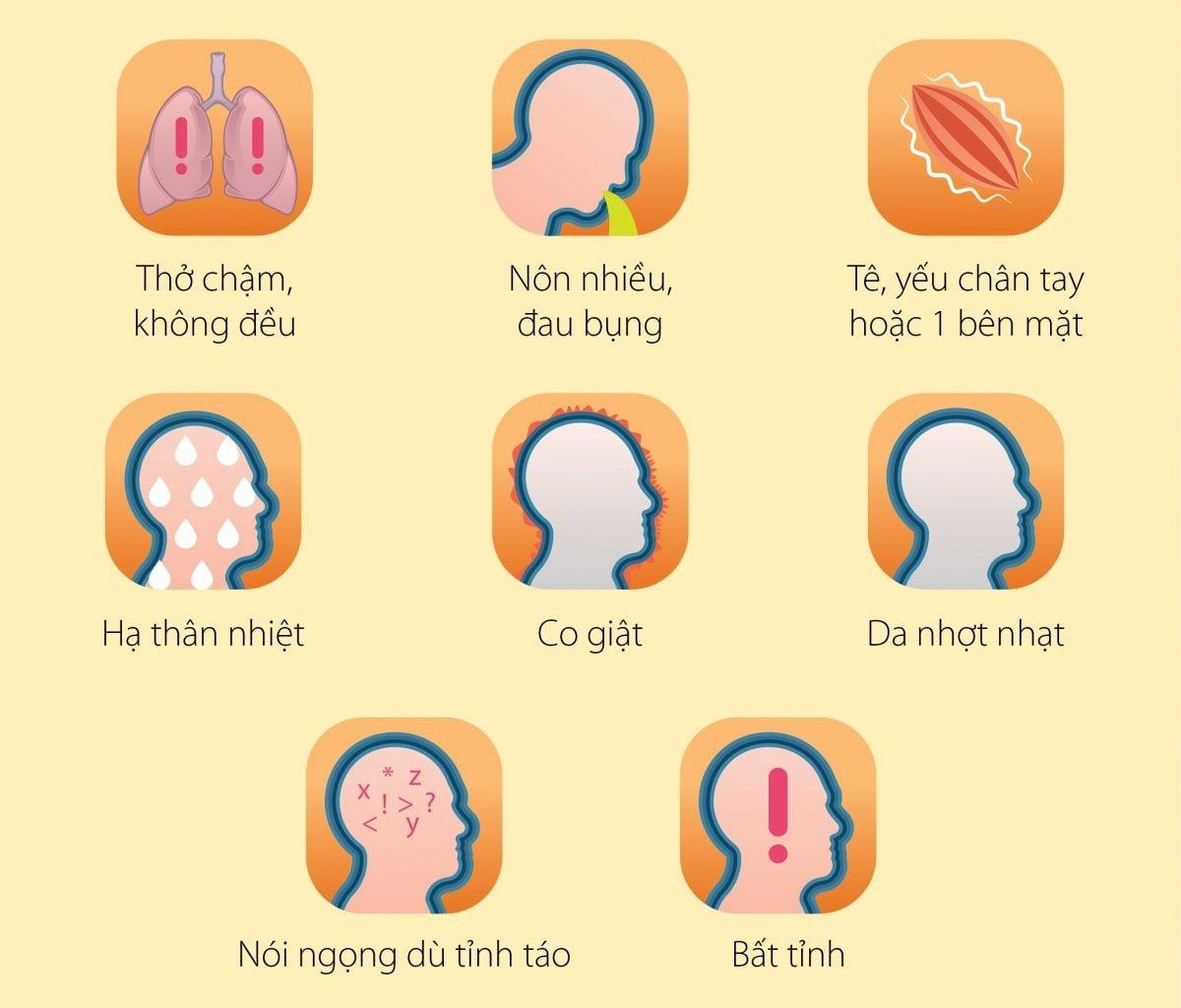 – Hệ thần kinh: Người bệnh tỉnh táo nhưng đau đầu, chóng mặt. Sau đó có dấu hiệu hay quên, bồn chồn, lú lẫn, hôn mê, hôn mê, co giật… Trường hợp nặng có thể xuất hiện chảy máu não, nhồi máu mủ, nhồi máu não…